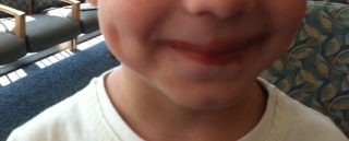 You should put a warning on some posts saying, “This post is incredibly funny. If you are currently seated in a library, you should warn everyone around you that you are about to burst out laughing hysterically,” because that is what just happened to me when I read “I pointed out to Nana Grab Bags that the lip gloss girl looks like she is taking a crap and my son rubs said crap on his face. This is what C.J. looks like with the lip gloss on.”