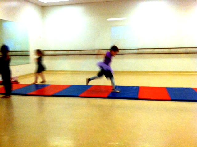 Class started and C.J. was crab walking across the wood floor.