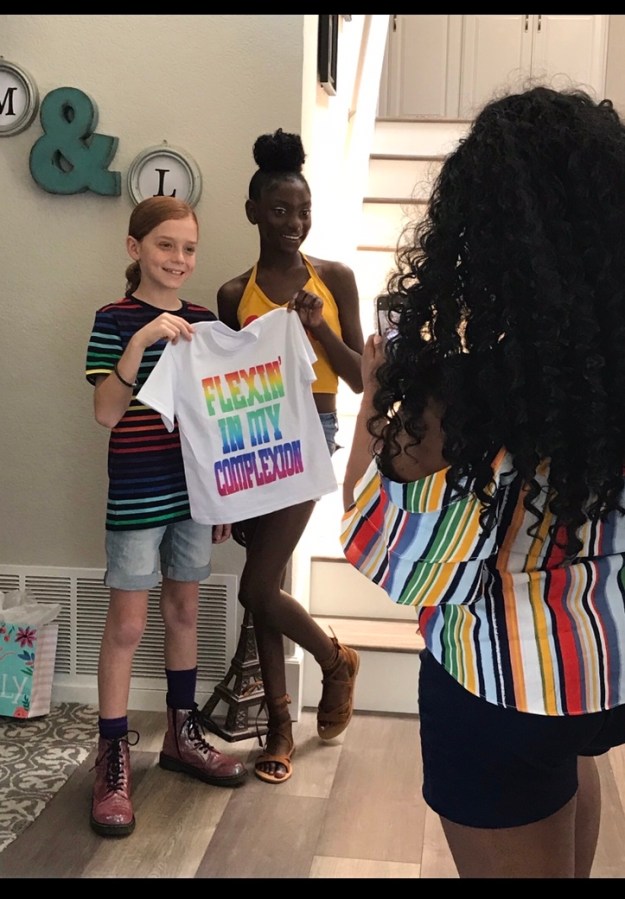 CJ and his custom rainbow Flexin’ In My Complexion shirt.